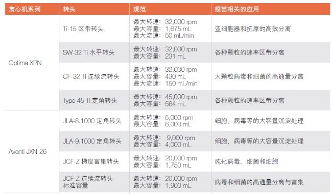 圖4:用于疫苗生產(chǎn)的離心機和轉(zhuǎn)頭推薦