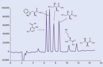 圖5.親水分離模式下6種極性化合物分離譜圖