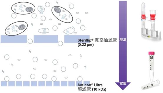 在大量實(shí)踐中大家逐漸認(rèn)識(shí)到根據(jù)下游研究對(duì)樣品的要求,以及起始樣品的規(guī)模、數(shù)量,可以選擇不同的外泌體制備策略。因不需要特殊的設(shè)備和試劑盒,對(duì)操作人員也沒(méi)有特別的經(jīng)驗(yàn)要求,超濾法后來(lái)居上,成為實(shí)驗(yàn)室中制備外泌體的通用方法。