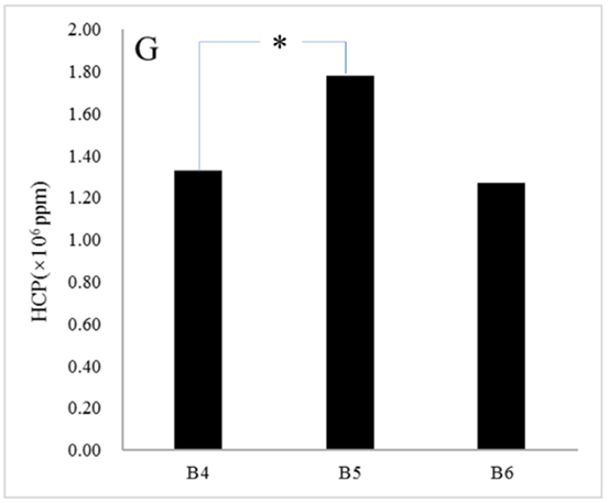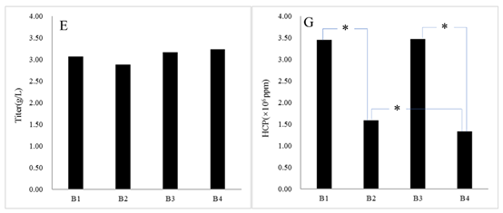 隨后在B4基礎上,進行了補料體積優(yōu)化(B5)和金屬離子的添加(B6);在添加了金屬離子后,HCP得到了進一步的降低。