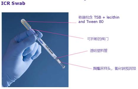 其次,采用聚酯的采樣頭,并且已使用無菌氯化鈉溶液預(yù)潤濕,采樣后在表面沒有殘留,使用后表面也無需清潔;