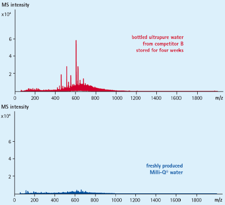 Milli-Q 超純水系統(tǒng)正確的安裝和維護(hù)能夠滿足 LC-MS 實(shí)驗(yàn)用水的需求;新鮮的超純水比儲存的超純水或暴露在空氣中的超純水能得到更好的實(shí)驗(yàn)結(jié)果。超純水應(yīng)使用玻璃容器承裝, 并且玻璃容器不能用洗瓶機(jī)洗滌。