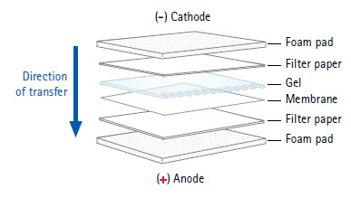 濕轉(zhuǎn)是將膠/膜疊層裝置浸入緩沖液中,在膠/膜疊層的兩側(cè)加電場,電流會(huì)從膠/膜疊層中穿過,使帶電的蛋白在電流的作用下轉(zhuǎn)移到膜上。電流除了從膠/膜疊層穿過,還可以從緩沖液的其他區(qū)域流過,加上膠/膜疊層的電阻也比其他區(qū)域的電阻大,大部分電流優(yōu)先從沒有膠/膜疊層區(qū)域的緩沖液中流過,也就是說作用到膠/膜疊層的有效電流是很少的。再者,隨著轉(zhuǎn)膜時(shí)間的增加,緩沖液中的有效離子的濃度也會(huì)不斷地降低,表現(xiàn)為恒流轉(zhuǎn)膜時(shí),電壓會(huì)不斷上升,恒壓轉(zhuǎn)膜時(shí),電流會(huì)不斷降低。這就導(dǎo)致了濕轉(zhuǎn)的時(shí)間很長,一般在1-2個(gè)小時(shí),但是慢也導(dǎo)致了結(jié)果的均勻和穩(wěn)定。