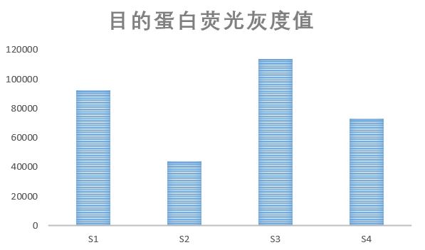從上圖可以看出,目的蛋白在S3中的發(fā)光強(qiáng)度最大,接近S2的2.5倍。然而經(jīng)過蛋白歸一化后,結(jié)果,如圖9所示: