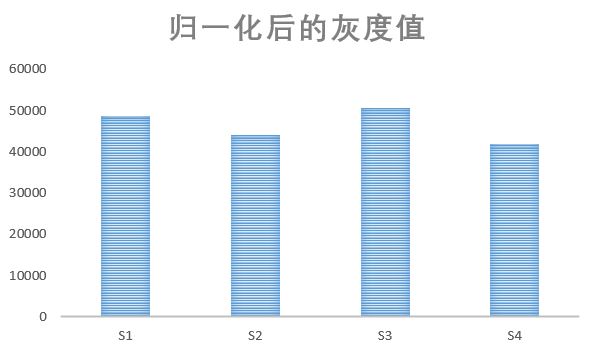 如果僅看三個(gè)樣品中目的蛋白的灰度值(如圖3中藍(lán)色數(shù)據(jù)條所示),會發(fā)現(xiàn)其發(fā)光強(qiáng)度基本一致。此時(shí)并不能判斷目的蛋白的含量一致,因?yàn)閮?nèi)參蛋白的灰度值相差較大(如圖3中橙色數(shù)據(jù)條所示),因此還需要通過內(nèi)參蛋白進(jìn)行校正,將內(nèi)參蛋白的灰度值歸一化,可得到三個(gè)樣品中目的蛋白的真實(shí)灰度值,該結(jié)果才能比較準(zhǔn)確地反映目的蛋白的含量。計(jì)算結(jié)果如圖4所示:
