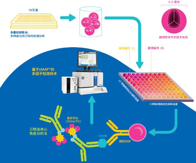 高通量ELISA — MILLIPLEX®多重蛋白檢測(cè)技術(shù),采用獨(dú)特的微球染色讀取技術(shù),