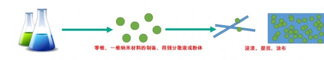 非原位的方法即先制備納米材料,并將其加工為分散液,利用浸漬提拉或者噴涂等手段實現(xiàn)納米負載。該方法容易造成分布不均,還會造成原料的大量浪費。