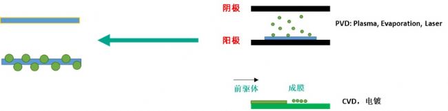 氣相沉積是一種較為成熟的沉積方案,但傳統(tǒng)的方式如:蒸發(fā)法或濺射法,離子鍍都依賴于真空環(huán)境,設(shè)備較為復(fù)雜,同時對基底纖維可能造成熱損傷和機械損傷。同時,由于纖維膜本身具備一定的厚度,真空鍍膜的方式很難保證顆粒能穿透進入孔隙之中。原子層沉積技術(shù)是一種靈活性高,且可控性強的薄膜沉積技術(shù),其穿透性強,從單原子到致密的薄膜的合成均可滿足。但對于有機聚合物纖維基底,其反應(yīng)效率太低,且工藝要求較高,目前尚無工業(yè)應(yīng)用。