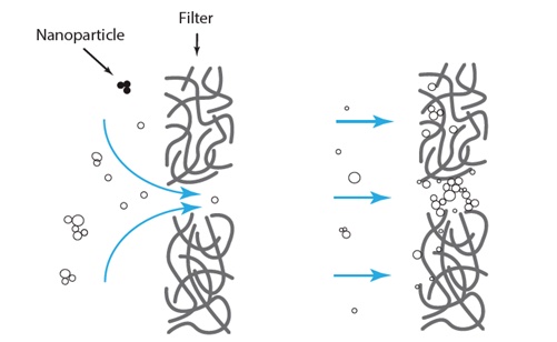 通過數(shù)據(jù)檢測,我們可以看出,絕大部分的納米級粒子都通過擴散機制吸附。而沖壓和攔截對于大顆粒都有明顯的收集效果。因此,可以利用擴散的方式將大部分的超細顆粒收集在纖維層中。