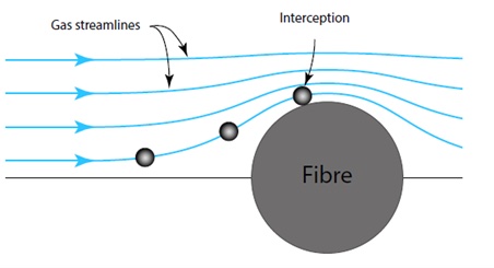 攔截機制是顆粒在運動的過程中,由于纖維的阻擋會使氣流偏移,而當顆粒中心之間的距離小于纖維直徑與顆粒的半徑之和,因此顆粒有較大概率會被纖維截留。對于較大的顆粒,攔截作用是主要的收集機制。