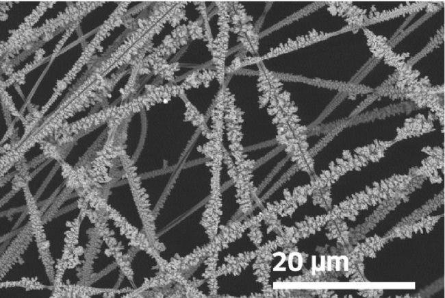 以碳基纖維材料為代表的纖維基材由于具備良好的導(dǎo)電性,是理想的電催化劑載體。但傳統(tǒng)的方法為將催化劑制成分散液,利用浸漬噴涂等方法負載在纖維表面。該方法的弊端也很明顯,噴涂的方式結(jié)合力較弱,且催化劑顆粒分布不均勻,很容易導(dǎo)致團聚。在纖維負載中,一個很常見的誤區(qū)是認為纖維表面負載的顆粒涂層越厚越好,但在實際催化反應(yīng)中,只有表層的顆粒以及分散性較好的小顆粒作為活性位點發(fā)生反應(yīng)。因此,保證纖維表面顆粒的“島狀”分布,對于促進催化效果有積極意義。