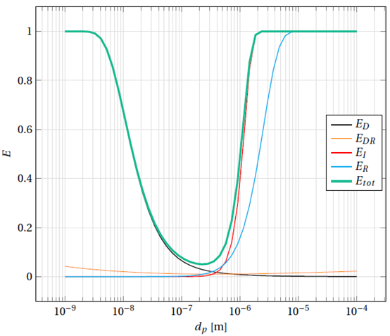 火花燒蝕利用的是大氣壓等離子火花放電,從而將導(dǎo)電的靶材燒蝕產(chǎn)生納米氣溶膠。通過氣流的控制可以實現(xiàn)顆粒粒徑的控制,在過濾的機制下實現(xiàn)沉積,而在過濾作用發(fā)生效果的過程中,主要有四種機制實現(xiàn)顆粒物的收集: