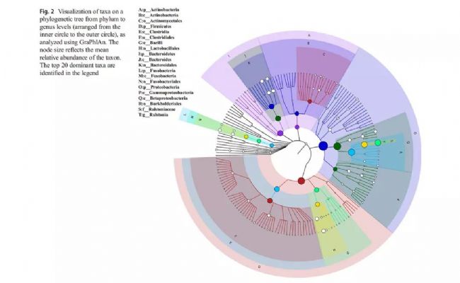 圖2.從門到屬的系統(tǒng)發(fā)育樹上分類群的可視化