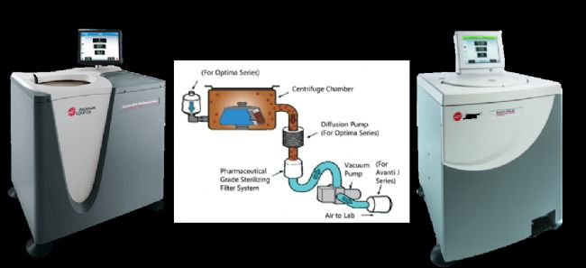 我們的超速離心機(jī)和高速離心機(jī)系統(tǒng),可選裝生物安全過(guò)濾系統(tǒng),通過(guò)將制藥級(jí)氣體除菌過(guò)濾器安裝在真空泵和離心腔之間,能夠有效隔離離心時(shí)產(chǎn)生的氣溶膠,避免氣溶膠從離心腔外溢至實(shí)驗(yàn)室空氣中。