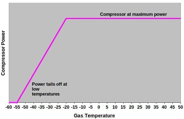 離心濃縮中對(duì)于高效的冷阱,冷凝功率比低阱工作溫度更重要。在非常低的溫度(例如,–80 °C 至 –100 °C)下運(yùn)行的捕集阱通常會(huì)消耗幾乎所有可用功率來達(dá)到這些極端溫度,而不是冷凝溶劑蒸氣。這種系統(tǒng)可能足以用于冷凍干燥,這是一個(gè)相對(duì)緩慢的過程;然而,由于冷凝能力有限,它們作為高速濃縮的冷阱效率低下。氣體壓縮機(jī)為冷阱提供最大冷凝功率,低至約 –20 °C(圖 3); 除此之外,冷凝功率迅速下降。因此,通過將溶劑的沸點(diǎn)控制在 –20 °C 或更高,以確保冷阱的氣體壓縮機(jī)系統(tǒng)以全冷凝功率運(yùn)行,從而最好地實(shí)現(xiàn)冷阱的最佳性能。因此,為了優(yōu)化真空系統(tǒng)中的溶劑回收過程,考慮真空泵和冷阱功能以及擁有壓力控制器和所用溶劑的知識(shí)至關(guān)重要。