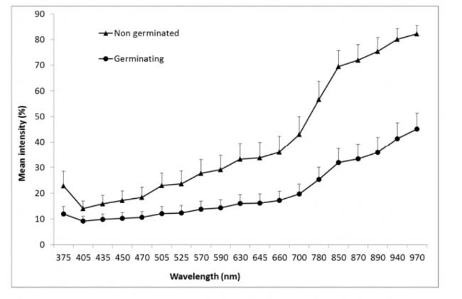 圖6.平均反射光譜基于來(lái)自發(fā)芽和未發(fā)芽種子的種子的種皮表面的反射