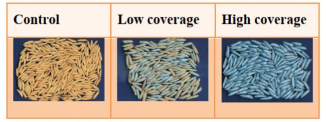 圖1.水稻種子表面聚合物涂層的視覺效果