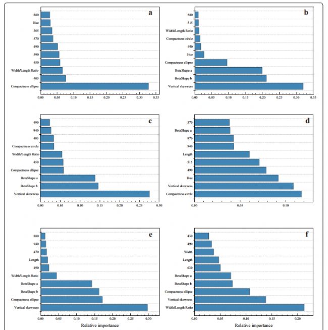 圖3.線性判別分析模型中形態(tài)和光譜特征的相對重要性