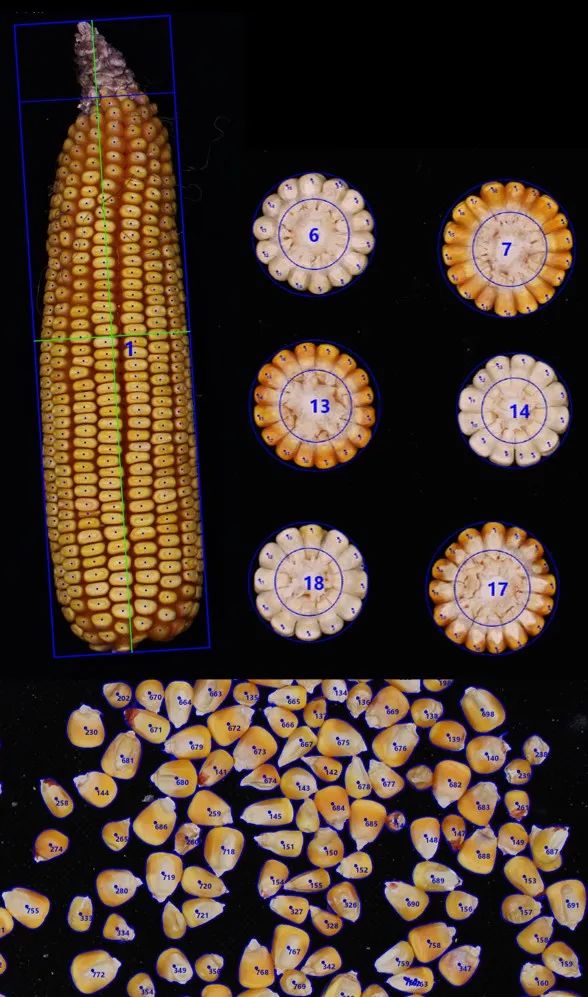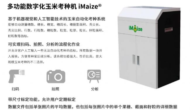 多光能數(shù)字化玉米考種機(jī)iMaize®是基于AI技術(shù)對(duì)玉米的整穗、截面和籽粒進(jìn)行考種的系統(tǒng),能夠自動(dòng)測量穗數(shù)、穗長、穗寬、穗周長、穗投影面積、禿尖長、禿尖比例、行數(shù)、行粒數(shù)、穗粒數(shù)、粒寬、粒厚、粒長、籽粒面積、籽粒數(shù)等指標(biāo)。