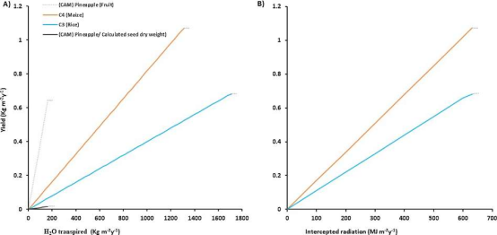 圖1.不同植物品種產(chǎn)量與資源消耗的線性關(guān)系