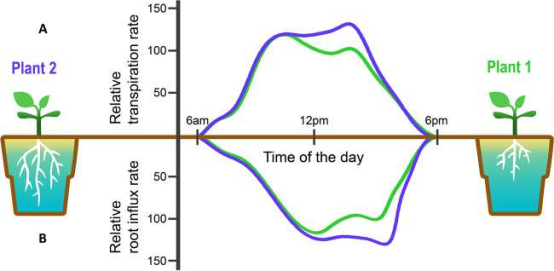 圖4.根系性能對(duì)莖蒸騰作用的影響