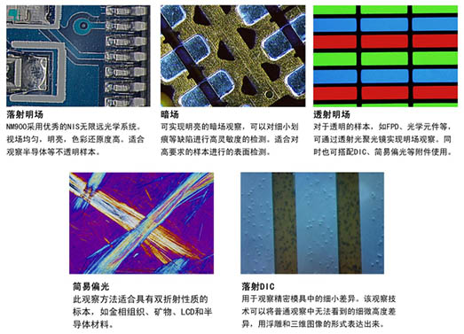 5)根據(jù)工業(yè)和材料學(xué)的不同應(yīng)用,通過模塊化組合,能實現(xiàn)多種觀察方式:明場、暗場、偏光、熒光、DIC等