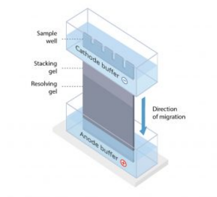 第一個室連接到陰極,樣品上樣孔暴露在此處,第二個室連接到凝膠末端的陽極。施加電壓,蛋白質(zhì)通過凝膠向陽極移動。