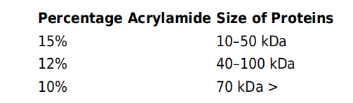 PAGE 可用于分離5至200 kDa 的蛋白質(zhì)。對于大分子量蛋白質(zhì)(700–4,200 kDa),瓊脂糖凝膠比聚丙烯酰胺凝膠更適合用于分離蛋白。