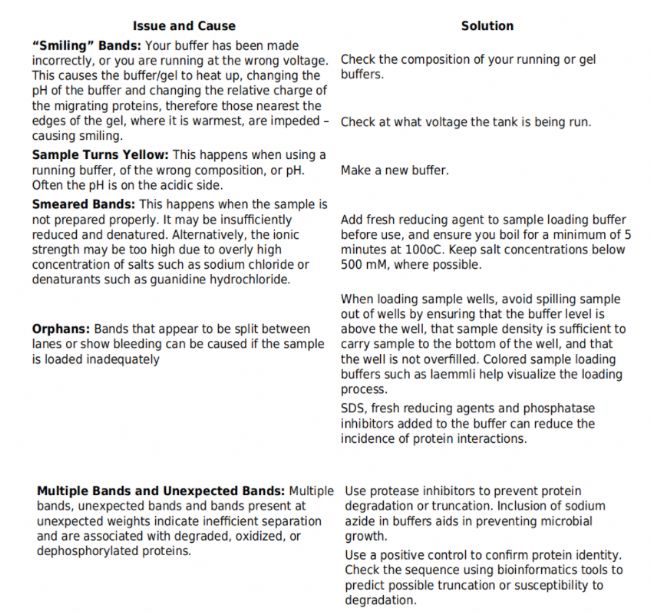 圖2. 跑膠過程中可能遇到的問題和對應(yīng)的解決辦法