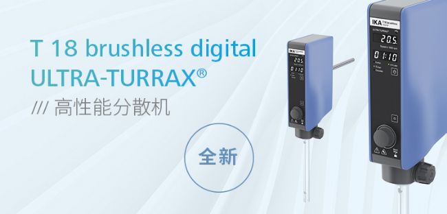 IKA新推出的T18 brushless digital分散機,可處理樣品體積最大可至1500ml,即便用小直徑轉(zhuǎn)子也可達到最高25000rpm的轉(zhuǎn)速,最大處理粘度高達5000 mPas,能廣泛地用于乳化,均質(zhì),分散和懸浮等實驗操作。