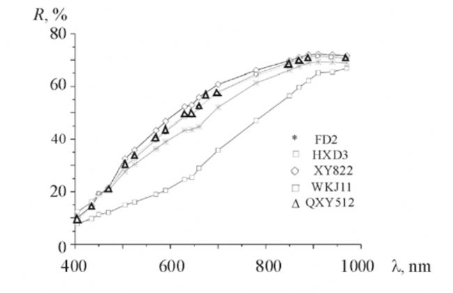 圖3.五種水稻種子多光譜圖像的平均光譜