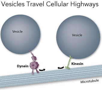 細(xì)胞內(nèi)細(xì)胞器的定位、遷移和胞內(nèi)物質(zhì)運輸,依賴于馬達(dá)蛋白和微管(Microtubule,簡稱MT)的相互作用,前者相當(dāng)于“車輛”,而后者相當(dāng)于“高速公路”。2013年詹姆斯·羅斯曼、蘭迪·謝克曼和托馬斯·聚德霍夫3位科學(xué)家因發(fā)現(xiàn)細(xì)胞中囊泡轉(zhuǎn)運機制,獲得了2013年諾貝爾生理學(xué)或醫(yī)學(xué)獎。