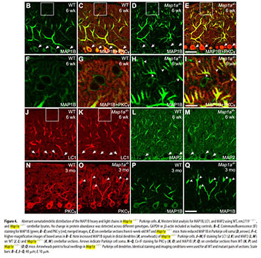 MAP1B變異(綠)導(dǎo)致神經(jīng)元退化(紅)③