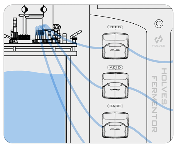 霍爾斯(HOLVES)實(shí)驗(yàn)室發(fā)酵罐為例,pH電極測(cè)定完數(shù)值后,結(jié)果會(huì)直接反饋給HF-Control V2.2控制系統(tǒng),系統(tǒng)則會(huì)根據(jù)原先設(shè)定數(shù)值進(jìn)行調(diào)節(jié)補(bǔ)料等操作,將罐內(nèi)pH值控制在最佳范圍內(nèi)。