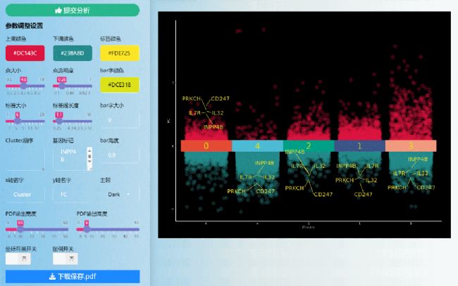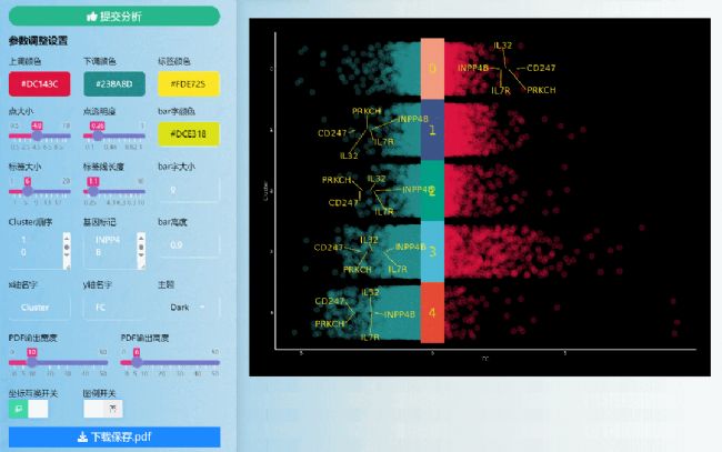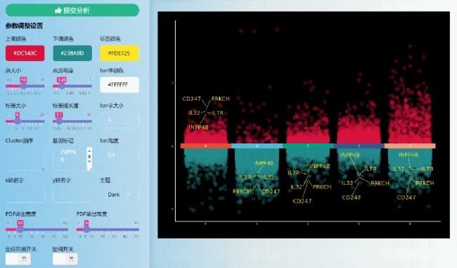 iii. 可視化結(jié)果標記基因及參數(shù)調(diào)整1. 打開上傳文件,選擇目標基因,將基因復(fù)制粘貼至基因標記文本框中,注意基因必須在提交的表格里,否則無法標記展示: