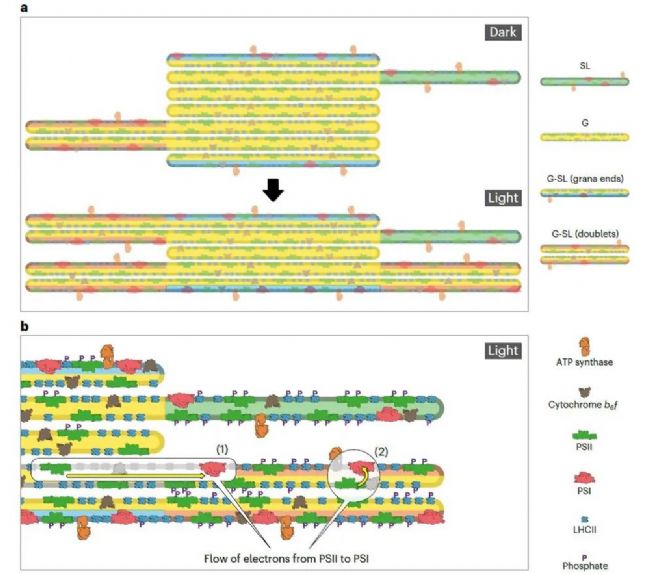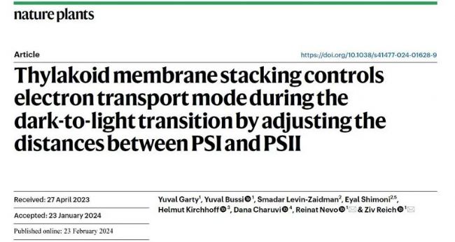 2024年2月23日以色列魏茨曼科學(xué)研究所生物分子科學(xué)系Reich, Ziv等人在Nature Plants(IF=18.0)雜志上發(fā)表題為Thylakoid membrane stacking controls electron transport mode during the dark-to-light transition by adjusting the distances between PSI and PSII的研究論文。研究人員使用冷凍-斷裂低溫掃描電子顯微鏡和透射電子顯微鏡等技術(shù)對擬南芥葉片暗-光轉(zhuǎn)換前后類囊體堆疊方式進(jìn)行觀察,揭示了在這暗-光轉(zhuǎn)變過程中形成的獨(dú)特膜區(qū),這些膜區(qū)同時(shí)具有類囊體網(wǎng)絡(luò)堆疊區(qū)和非堆疊區(qū)的特征。研究人員將這些區(qū)域稱為 "堆疊的類囊體雙層膜",其形態(tài)特征的一個(gè)顯著結(jié)果是,驅(qū)動LET的兩個(gè)光系統(tǒng)(PSI和PSII)的距離變近和連通性全面增強(qiáng)。這反過來又減少了在兩個(gè)光系統(tǒng)之間傳輸電子的移動載體的擴(kuò)散距離和障礙,從而最大限度地提高了LET,優(yōu)化了植物利用光能的能力。這里描述的從暗到光轉(zhuǎn)變過程中CET和LET 之間的轉(zhuǎn)變機(jī)制,很可能也用于由狀態(tài)轉(zhuǎn)換介導(dǎo)的色適應(yīng)過程。本研究中,葉綠素?zé)晒鉁y量由雙通道葉綠素?zé)晒鈨xDUAL-PAM-100完成。