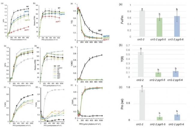 在植物的光合作用中,循環(huán)電子傳遞(CET)是一種重要的代謝途徑,它能夠在不產(chǎn)生NADPH的情況下,通過PSI回收電子,維持葉綠體膜上的質(zhì)子梯度。這一過程對于植物適應(yīng)不同光照環(huán)境、保護光系統(tǒng)免受光損傷具有重要意義。2024年4月1日,日本京都大學的研究人員在The Plant Journal上發(fā)表了題為Critical role of cyclic electron transport around photosystem I in the maintenance of photosystem I activity的研究論文。該研究通過對擬南芥中的PROTON GRADIENT REGULATION 5 (PGR5)基因進行敲除(KO)突變體研究,發(fā)現(xiàn)了PGR5在CET中的關(guān)鍵作用。