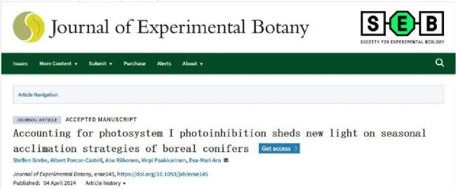 北歐常綠針葉樹在季節(jié)交替中一直都面臨著生存環(huán)境的巨大變化。特別是在冬季對溫度和光照變化的響應(yīng)。這些植物通過在分子水平和整個植物層面上調(diào)節(jié)光合作用反應(yīng)來適應(yīng)環(huán)境,包括光系統(tǒng)I(PSI)和光系統(tǒng)II(PSII)的光化學過程,以及卡爾文循環(huán)中的二氧化碳同化。在低溫抑制酶活性但針葉樹葉片仍吸收陽光的情況下,維持光合裝置不同組分之間的能量平衡至關(guān)重要,否則會導致光系統(tǒng)過度激發(fā)和電子積累,引起氧化損傷和PSII及PSI的光抑制。為了應(yīng)對冰凍溫度和過量光照條件,北歐針葉常綠植物在季節(jié)尺度上動態(tài)調(diào)整其光合蛋白復合物,并啟動一系列光保護機制,包括:1.可逆和持續(xù)的非光化學猝滅(NPQr和NPQs)的結(jié)合,防止PSII過度激發(fā);2.將電子從線性電子流(LEF)重新路由到替代電子流(AEF),將電子分流到除用于卡爾文循環(huán)中二氧化碳同化的NADP+之外的其他受體;3.上調(diào)循環(huán)電子流(CEF),將電子在PSI周圍循環(huán)回到質(zhì)體醌(PQ)池。AEF和CEF通過不同的分子途徑防止電子在電子傳輸鏈中積累,并在環(huán)境應(yīng)激條件下促進光保護功能。盡管先前對北歐針葉常綠植物季節(jié)性適應(yīng)的研究強調(diào)了AEF和CEF的重要性,但PSI和PSII的潛在動態(tài)仍未解決。2024年4月2日,芬蘭圖爾庫大學的Eva-Mari Aro實驗室在Journal of Experimental Botany雜志發(fā)表題為Accounting for photosystem I photoinhibition sheds new light on seasonal acclimation strategies of boreal conifers的研究論文,文章結(jié)合葉綠素a熒光、P700差吸光測量和關(guān)鍵類囊體蛋白豐度的定量等技術(shù)手段,研究了Pinus sylvestris和Picea abies在春季光合作用恢復期間PSII和PSI 的動態(tài)。值得注意的是,本研究引入并應(yīng)用了一套校正后的PSI量子產(chǎn)率計算公式,這擴展了P700差分吸收測量的分析,并允許在北歐針葉樹中識別季節(jié)性PSI光抑制。