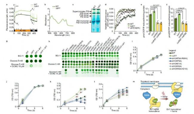 與依賴于ΔpH的qE不同,其動態(tài)變化對光強度變化表現(xiàn)出滯后效應(yīng),P700的氧化過程卻能極其迅速地放松。實際上,在擬南芥植物上使用快速振蕩的正弦波型光照機制表明, qE基本上無法快速且準確地跟蹤光照強度的變化,但PCON的響應(yīng)性要強得多。這表明,通過操縱qE的放松速率來更好地跟蹤光照強度變化,從而成功提高作物產(chǎn)量的轉(zhuǎn)基因方法對于P700氧化來說是不必要的。然而,在狗尾草(Setaria viridis)和擬南芥中,ISP亞基的過表達,從而提高細胞色素b6f復合物的水平,已被證明能在強光條件下增加生長和CO2同化作用,這表明增加流向PSI的電子流可以增強光合作用。事實上,狗尾草ISP過表達株系顯示出比野生型更高的PSI產(chǎn)量和更低的PSI氧化水平,但生長速度更快。同樣,表達藻類細胞色素c6:細胞色素b6f和PSI之間Pc的替代電子載體,也能增加生長。因此,重新調(diào)整細胞色素b6f對ΔpH的敏感性,可能使該系統(tǒng)對電子流的阻力降低,這可能與下游電子匯的操控協(xié)同作用,例如通過過表達CBB循環(huán)中的限速酶來改善作物生長。