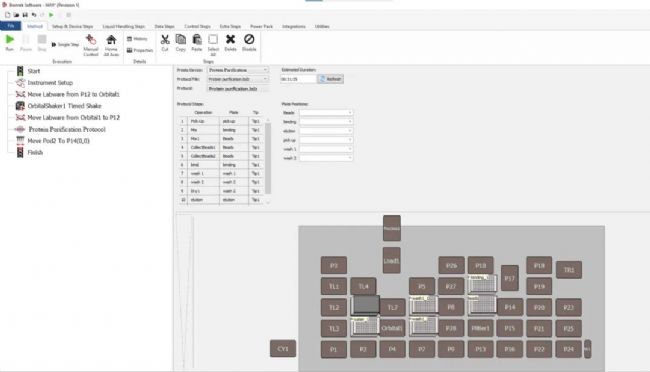 RoboColumn是一種小型色譜柱,用于抗體、蛋白質(zhì)、多肽等的全自動(dòng)平行色譜分離,其純化流程如圖4所示。高通量的RoboColumn ALP 與Biomek i系列液體工作站相結(jié)合,配置Span8固定針,可實(shí)現(xiàn)多通道自動(dòng)化的平行層析實(shí)驗(yàn)流程,顯著縮短工藝開(kāi)發(fā)時(shí)間;同時(shí)還可以進(jìn)行數(shù)據(jù)追蹤,實(shí)現(xiàn)樣本溯源,減少重復(fù)工作。