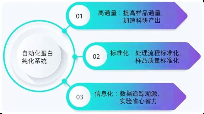 在綠色生物制造和合成生物學(xué)等研究領(lǐng)域中,高質(zhì)量的蛋白分離和純化是研究目的蛋白結(jié)構(gòu)和功能的重要步驟。傳統(tǒng)的分離純化方法通量低、耗時(shí)長(zhǎng)、均一性差,全自動(dòng)高通量蛋白純化系統(tǒng)在生命科學(xué)研究和生物制藥領(lǐng)域已開(kāi)始廣泛運(yùn)用,從樣本前處理工序,到不同類(lèi)型的蛋白純化流程,可實(shí)現(xiàn)多管線(xiàn)自動(dòng)化平行實(shí)驗(yàn),具有穩(wěn)定的工藝流程,可極大提高實(shí)驗(yàn)效率,節(jié)約時(shí)間和人力成本;同時(shí)還可以進(jìn)行數(shù)據(jù)交互,實(shí)現(xiàn)樣本溯源和實(shí)驗(yàn)數(shù)據(jù)管理。今天小貝給大家整理了幾種常見(jiàn)好用的蛋白純化方案助力您的科學(xué)研究。