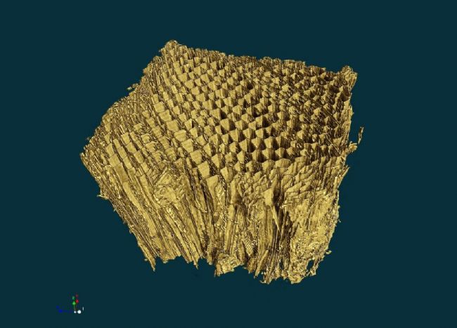 以 500nm 空間分辨率掃描的木材樣品重建結(jié)果的體積渲染