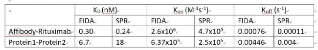 FIDA和SPR蛋白-蛋白互作動力學(xué)數(shù)據(jù)比較