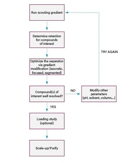 過去20年來,制備型高效液相色譜(Prep HPLC)一直都是較常用的純化技術(shù)之一。具體而言,該技術(shù)是精細(xì)化學(xué)品、制藥和生物技術(shù)行業(yè)普遍使用的一種分離工藝,廣泛應(yīng)用于產(chǎn)品純化。在這期間,Prep HPLC已發(fā)展成為一種非常高效且適用性極廣的技術(shù),尤其是在非手性純化領(lǐng)域。反相液相色譜(RPLC)的優(yōu)勢(shì)是采用幾乎通用的固定相(C18),以及由水和乙腈組成的通用混合流動(dòng)相。RPLC兼容質(zhì)譜(MS)分析,它與MS聯(lián)用(RPLC-MS)已成為許多研究環(huán)境下的標(biāo)準(zhǔn)純化方法。