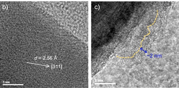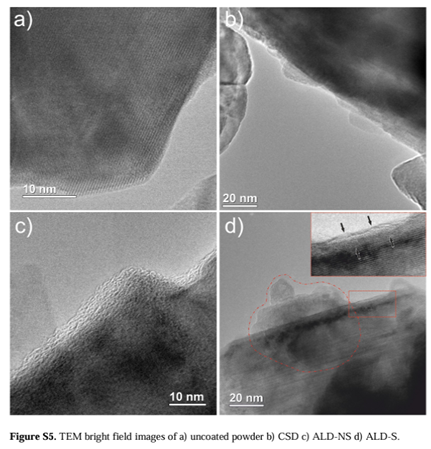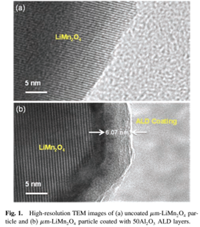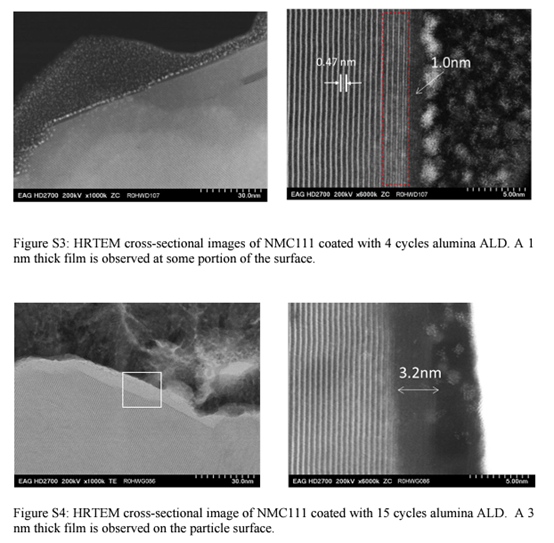 NMC 的 TEM 截面圖像,分別為 ALD 4cycle,15cycle Al2O3