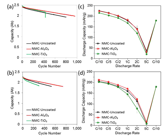 對于 NMC 基電池,氧化鋁包覆可以減少Ni 的溶解,提高電池的循環(huán)壽命和安全性。
