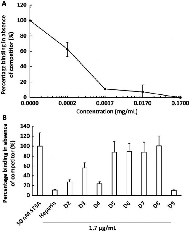 圖 5 肝素衍生物競(jìng)爭(zhēng) HS3STA1 與肝素的結(jié)合
