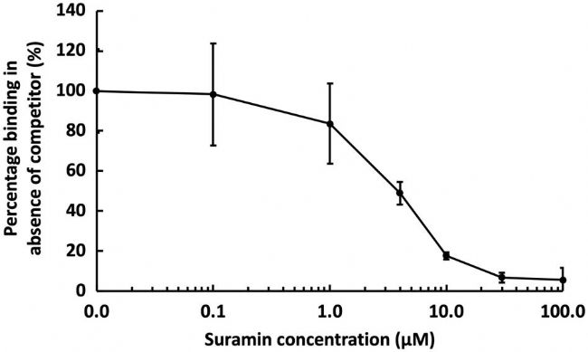 圖 6 蘇拉明競(jìng)爭(zhēng) GST-HS3ST3A1 與肝素的結(jié)合
