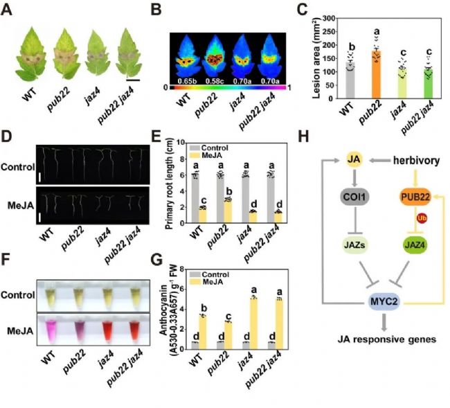 原文:Wu, S., Hu, C., Zhu, C., et al. The MYC2-PUB22-JAZ4 module plays a crucial role in jasmonate signaling in tomato[J]. Molecular Plant, 2024, 17(4), 598–613.