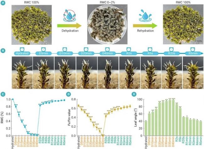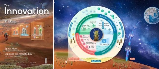 在探索宇宙的征途中,人類對于在其他星球建立定居點的構想愈發(fā)具體。這些宏偉計劃往往聚焦于如何使農(nóng)作物適應受控的人工環(huán)境,以確保食物供應的自給自足。然而,除了人工環(huán)境,我們同樣需要考慮如何在火星等外星環(huán)境的惡劣土壤中培育出能夠茁壯生長的先鋒植物。中科院新疆生地所研究員張道遠和張元明團隊聚焦于沙漠苔蘚——齒肋赤蘚(Syntrichia caninervis),揭示齒肋赤蘚的生存極限與適應策略。研究發(fā)現(xiàn),齒肋赤蘚能夠耐受自身98%以上的細胞脫水、-196℃超低溫速凍、5000 Gy以上伽馬射線輻射而不死,且在火星模擬條件下仍可以存活并再生出新的植株。這一成果刷新了極端生命體對環(huán)境的“耐受”紀錄。相關成果于7月1日以封面文章的形式發(fā)表在The Innovation,標題為The extremotolerant desert moss Syntrichia caninervis is a promising pioneer plant for colonizing extraterrestrial environments。